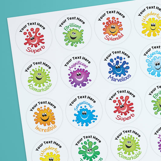 35 Personalised Jellybean Scented Splash Stickers - 37mm