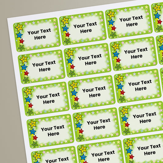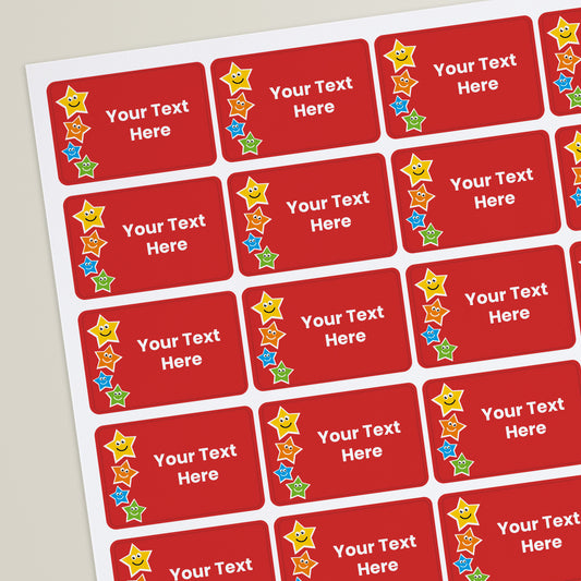 32 Personalised Smiley Stars Stickers - 46 x 30mm