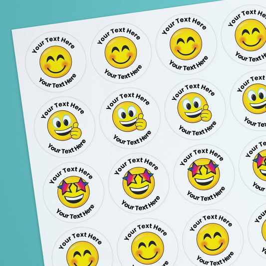 35 Personalised Bubblegum Scented Emoji Stickers - 37mm