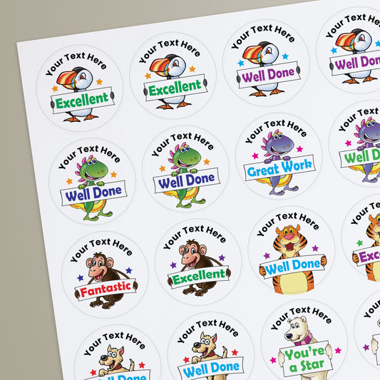 35 Personalised Bubblegum Scented Character Stickers - 37mm