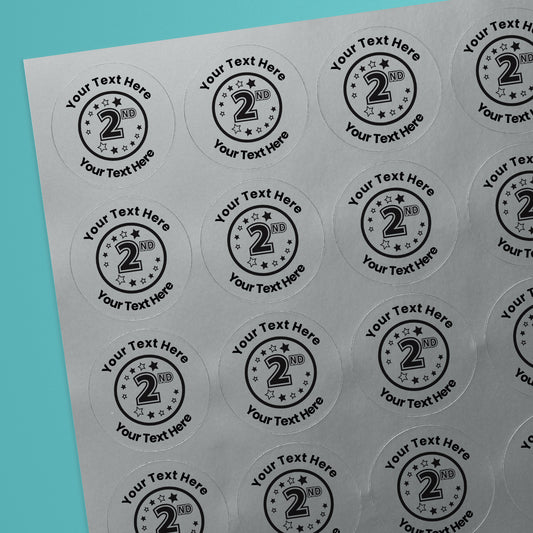 Personalised Metallic Silver 2nd Stickers - 37mm