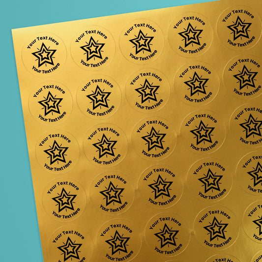 70 Personalised Metallic Gold Star Stickers - 25mm