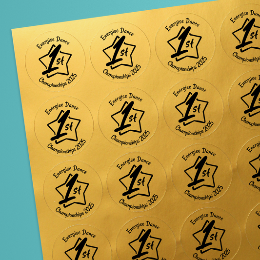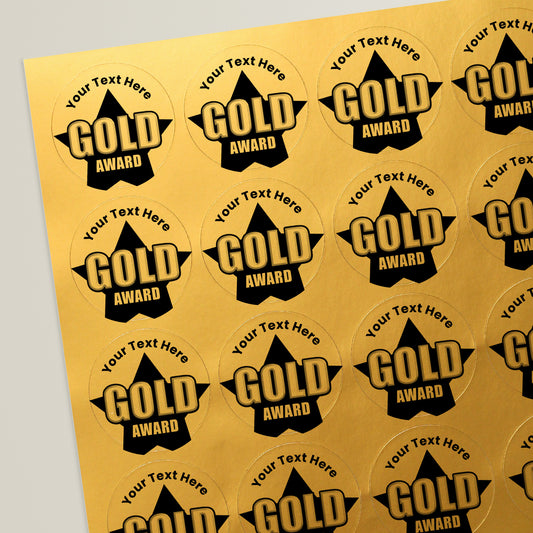 35 Personalised Metallic Gold Award Stickers - 37mm