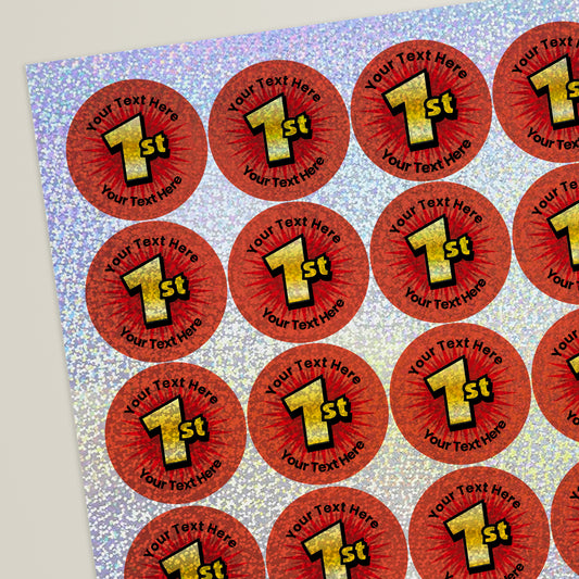 35 Personalised Holographic 1st Stickers - 37mm