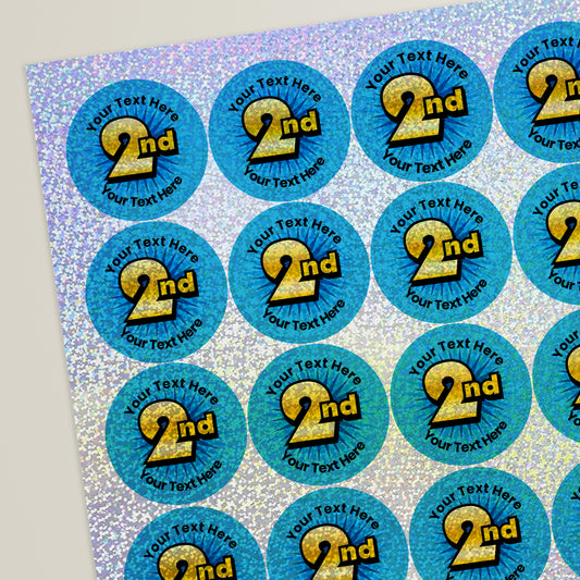 35 Personalised Holographic 2nd Stickers - 37mm