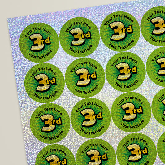 35 Personalised Holographic 3rd Stickers - 37mm