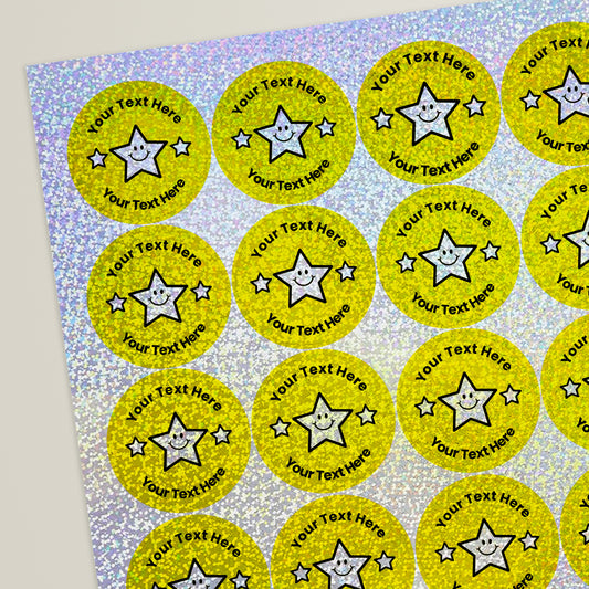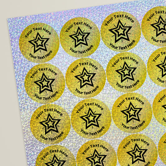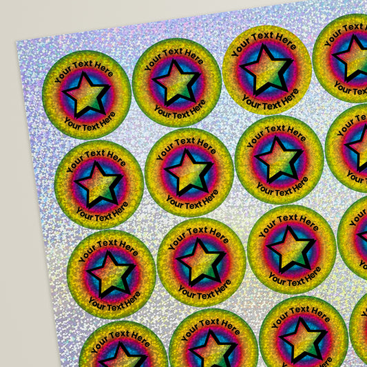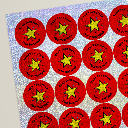 35 Personalised Holographic Bright Star Stickers - 37mm