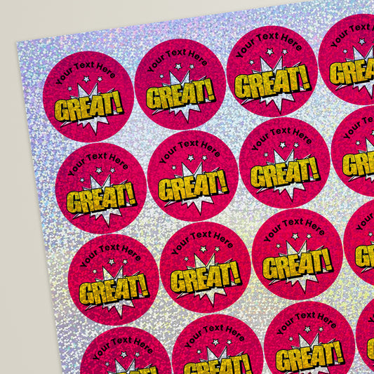 35 Personalised Holographic Great Stickers - 37mm