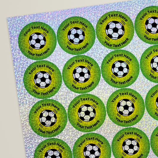 35 Personalised Holographic Football Stickers - 37mm