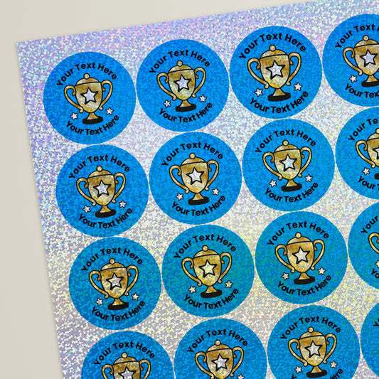 35 Personalised Holographic Trophy Stickers - 37mm