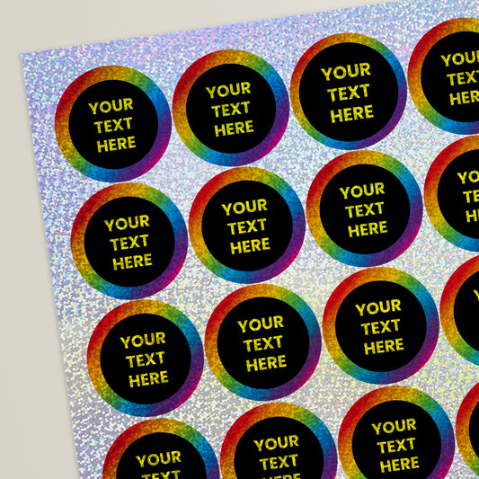 35 Personalised Holographic Neon Spectrum Stickers - 37mm