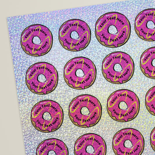 35 Personalised Holographic Doughnut Stickers - 37mm