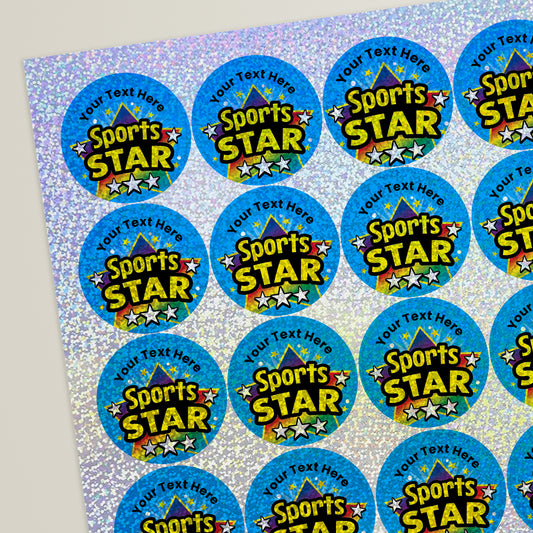 35 Personalised Holographic Sports Star Stickers - 37mm