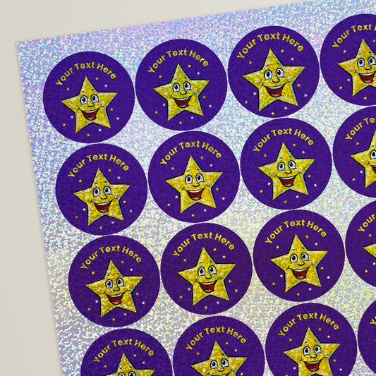 35 Personalised Holographic Smiley Star Stickers - 37mm