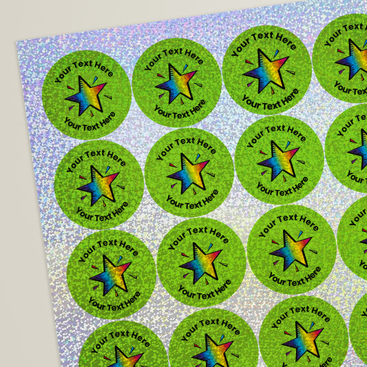 35 Personalised Holographic Rainbow Star Stickers - 37mm