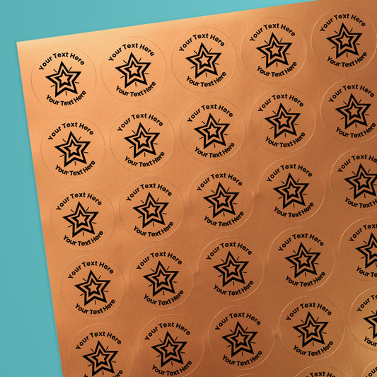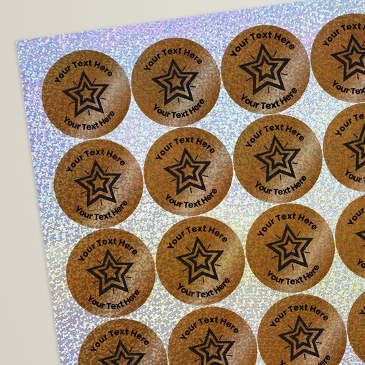 35 Personalised Holographic Bronze Star Stickers - 37mm