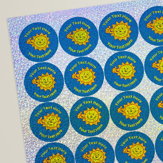 35 Personalised Holographic Sunshine Stickers - 37mm