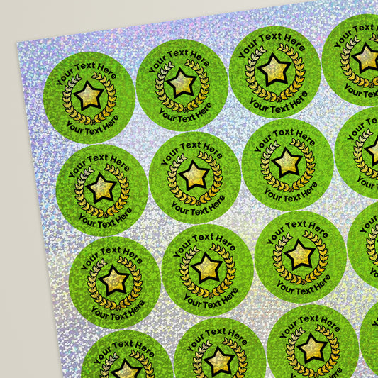 35 Personalised Holographic Laurel Wreath Stickers - 37mm