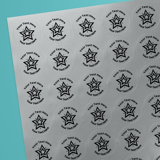 70 Personalised Metallic Silver Star Stickers - 25mm