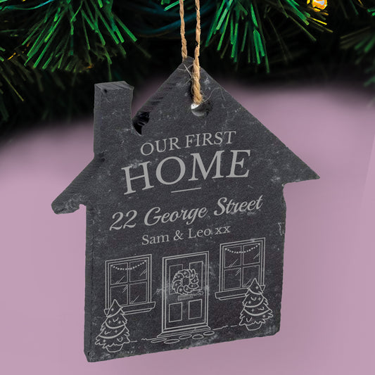 Personalised 'First Home' Christmas Slate House Bauble - 65mm x 75mm
