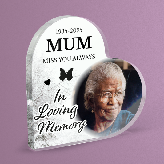 Personalised Memorial Photo Freestanding Heart Block/Coaster - 100mm