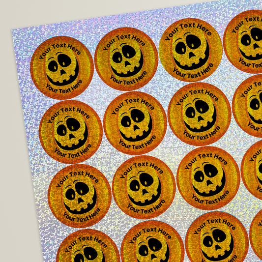 35 Personalised Holographic Pumpkin Stickers - 37mm