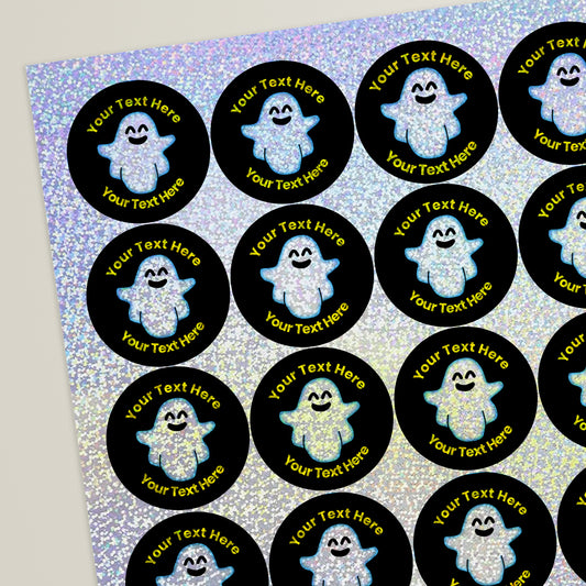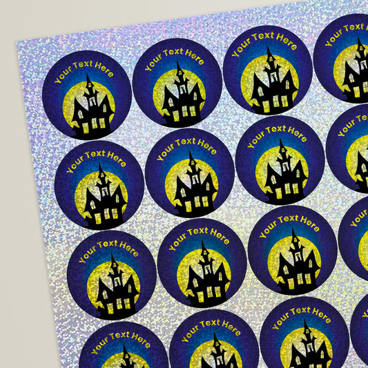 35 Personalised Holographic Haunted House Stickers - 37mm
