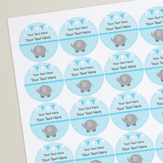 35 Personalised Elephant Baby Shower Stickers - 37mm