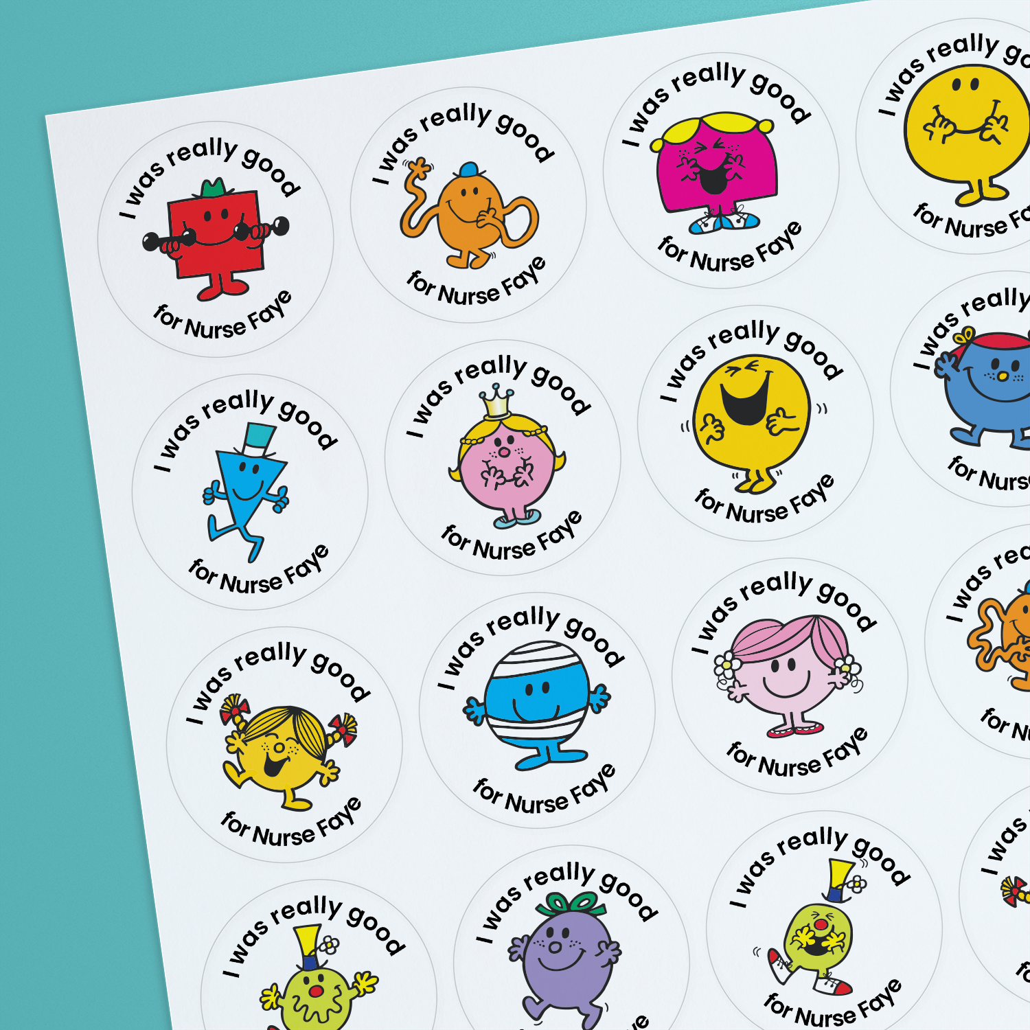 Personalised Mr Men and Little Miss Stickers - For Dentists - Jellybean Scented