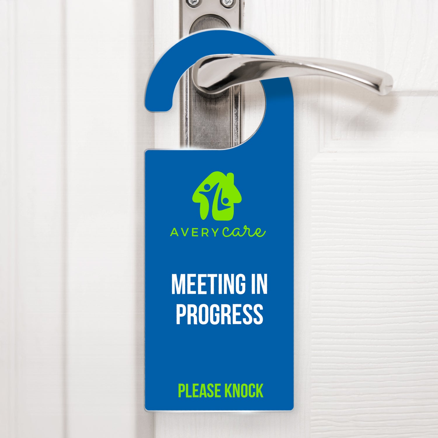 - Flat, acrylic door hanger