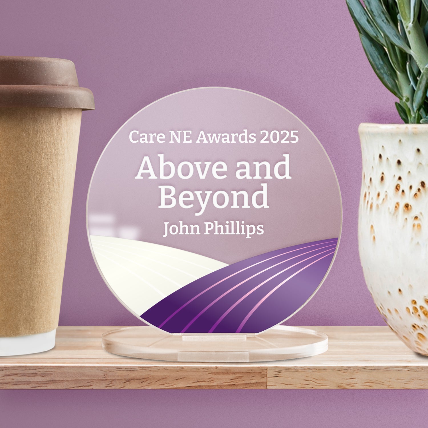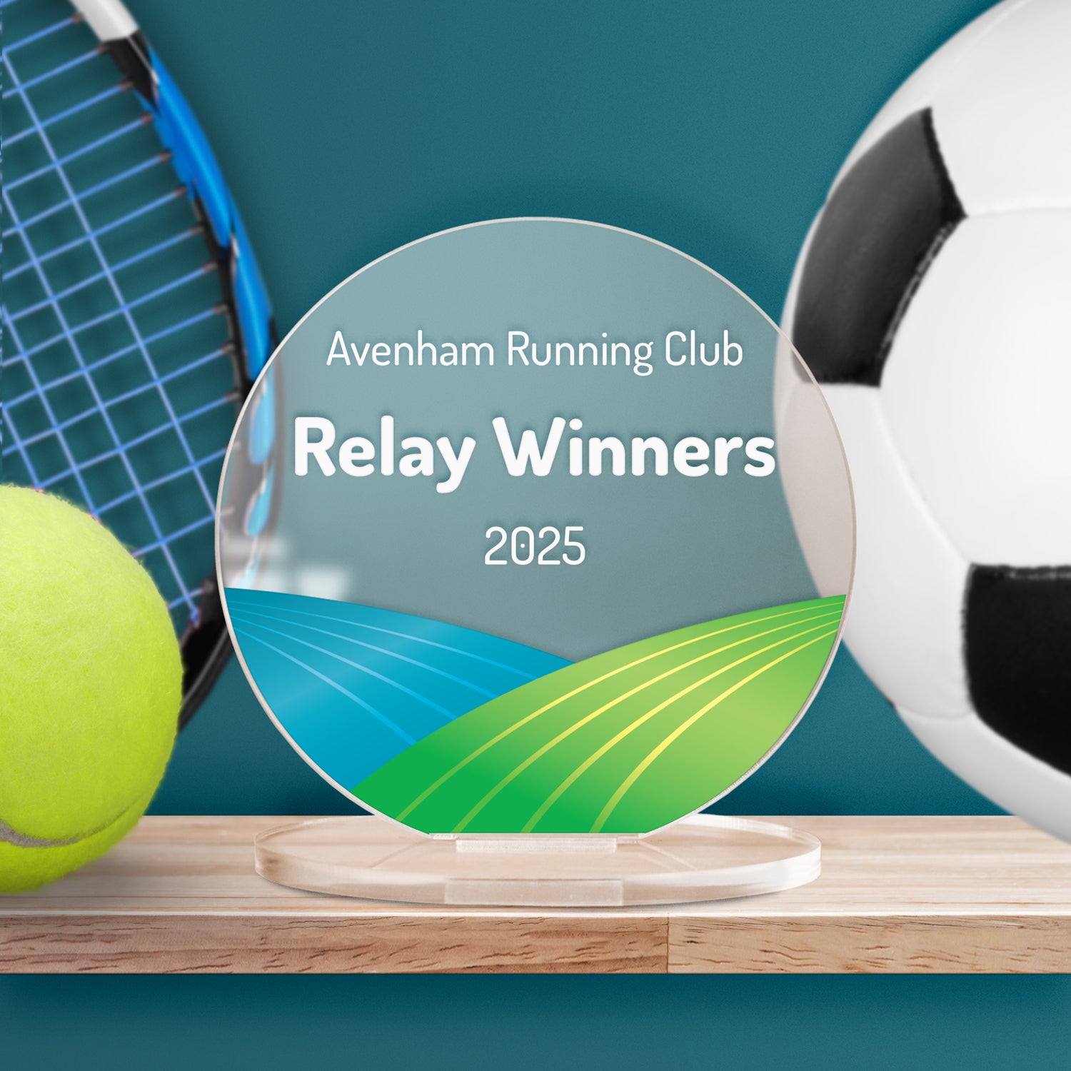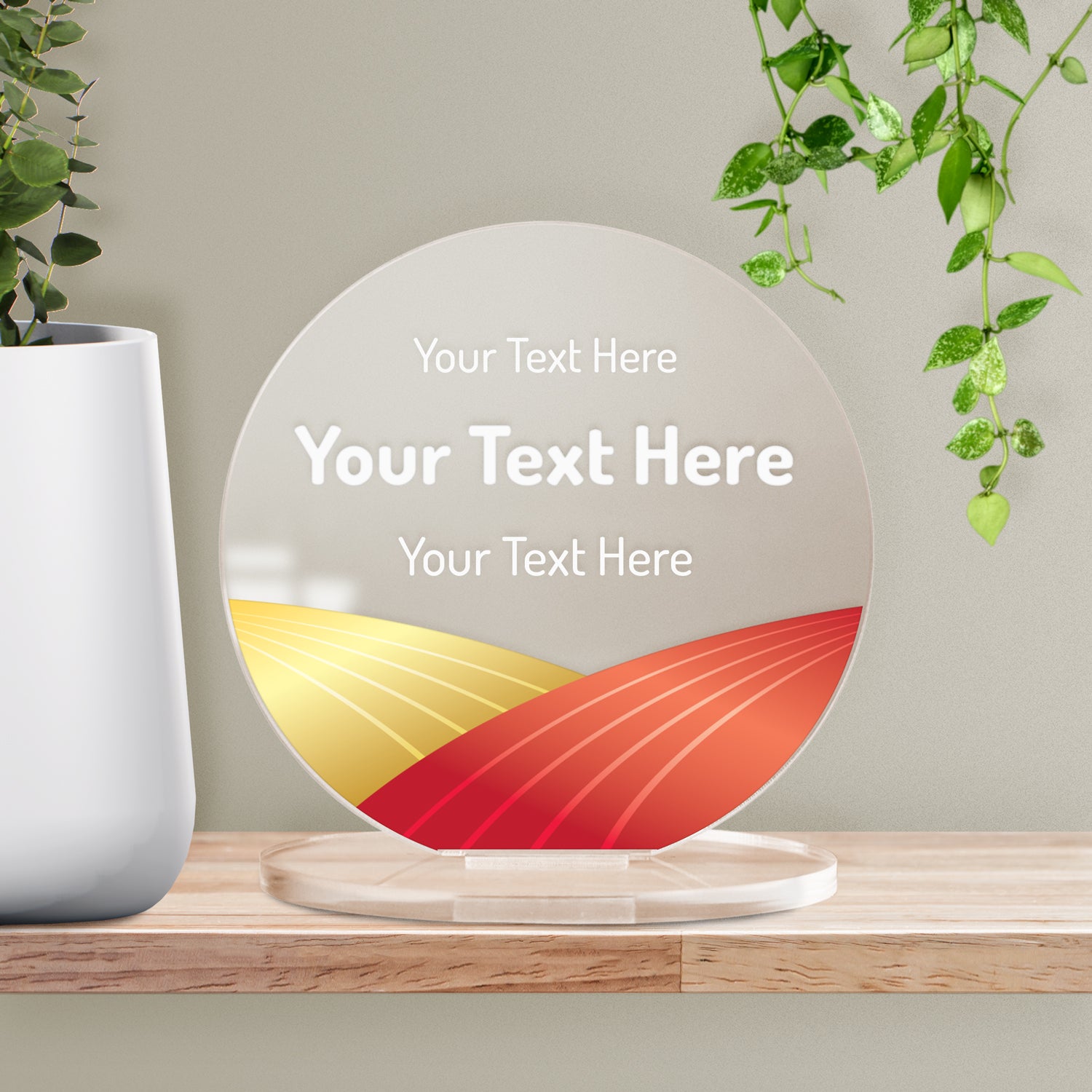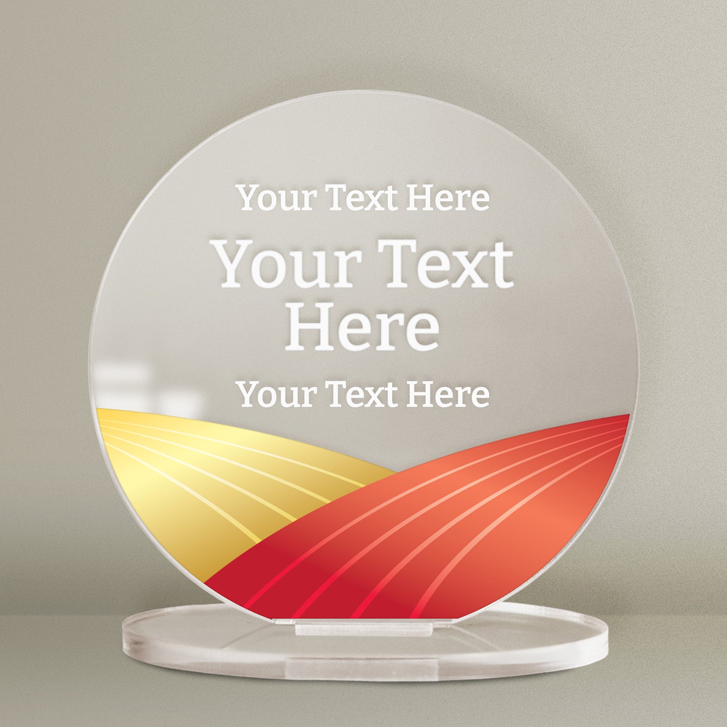 Add your own wording and choose a colour scheme for this circular acrylic plaque to create a unique reward. Your design will printed onto a 100mm diameter circle which is 3mm thick and arrives with an acrylic stand.