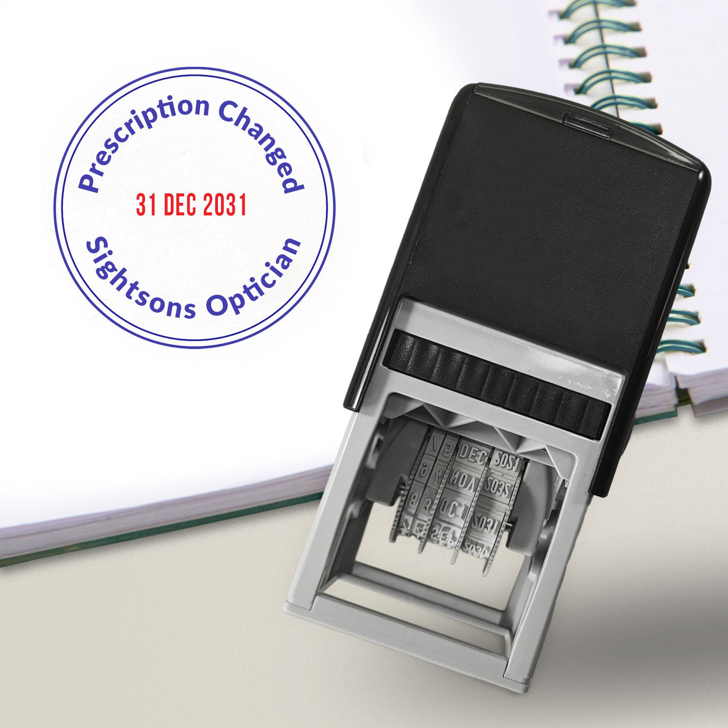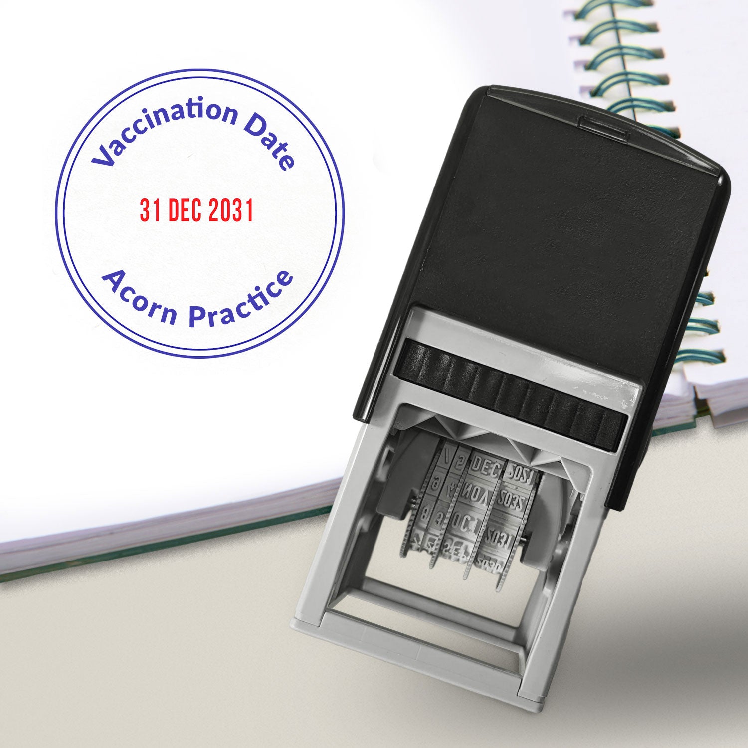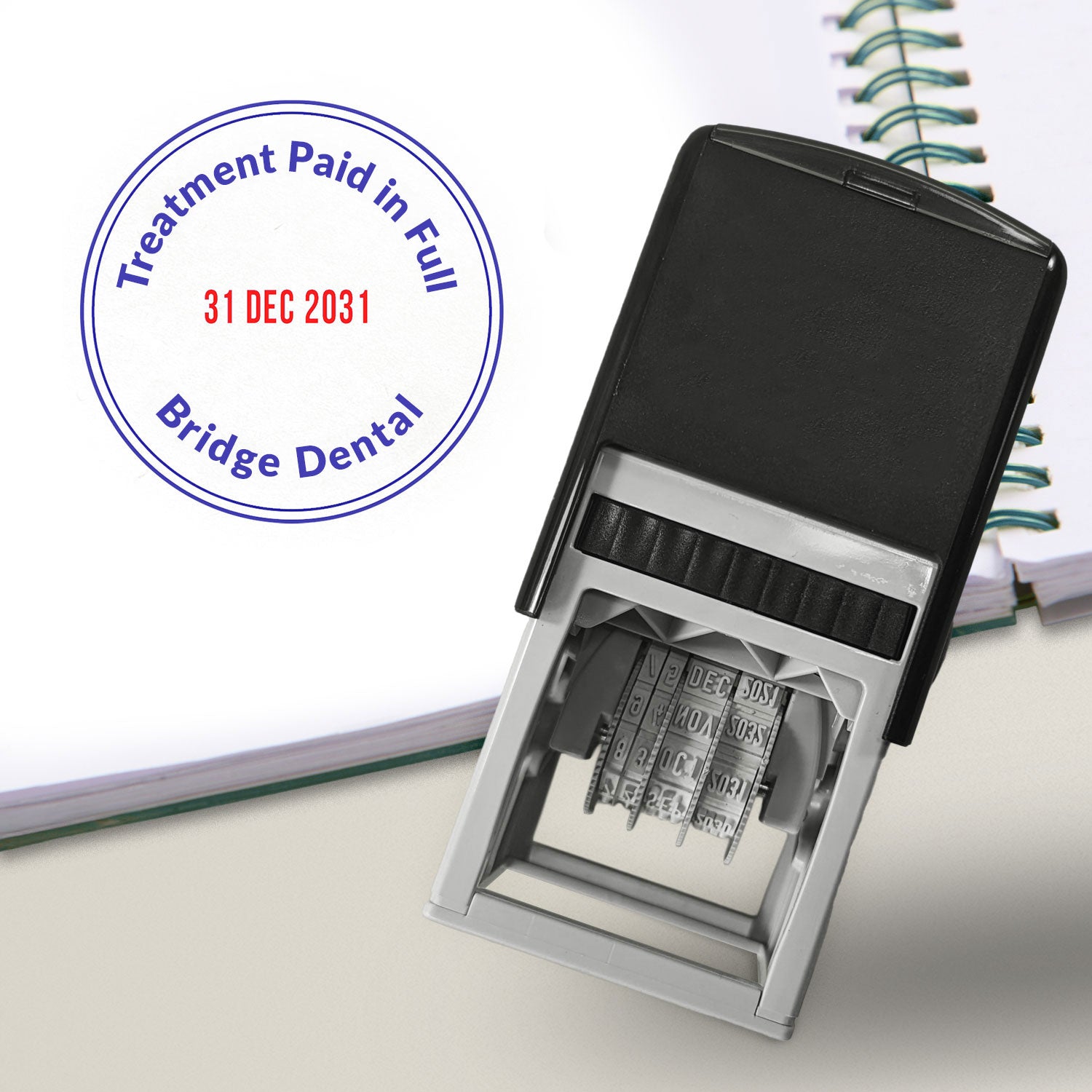 Personalise this red and blue ink stamper with your own wording to add important information with a date to your paperwork - perfect for your business or home office!