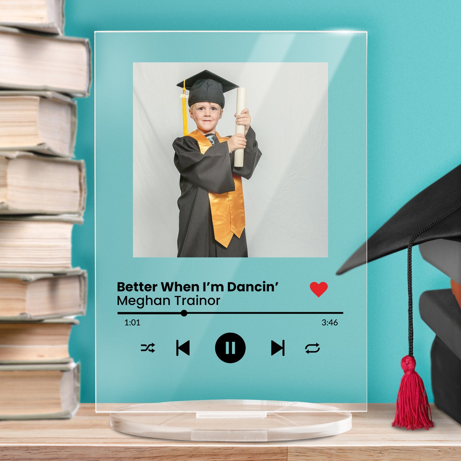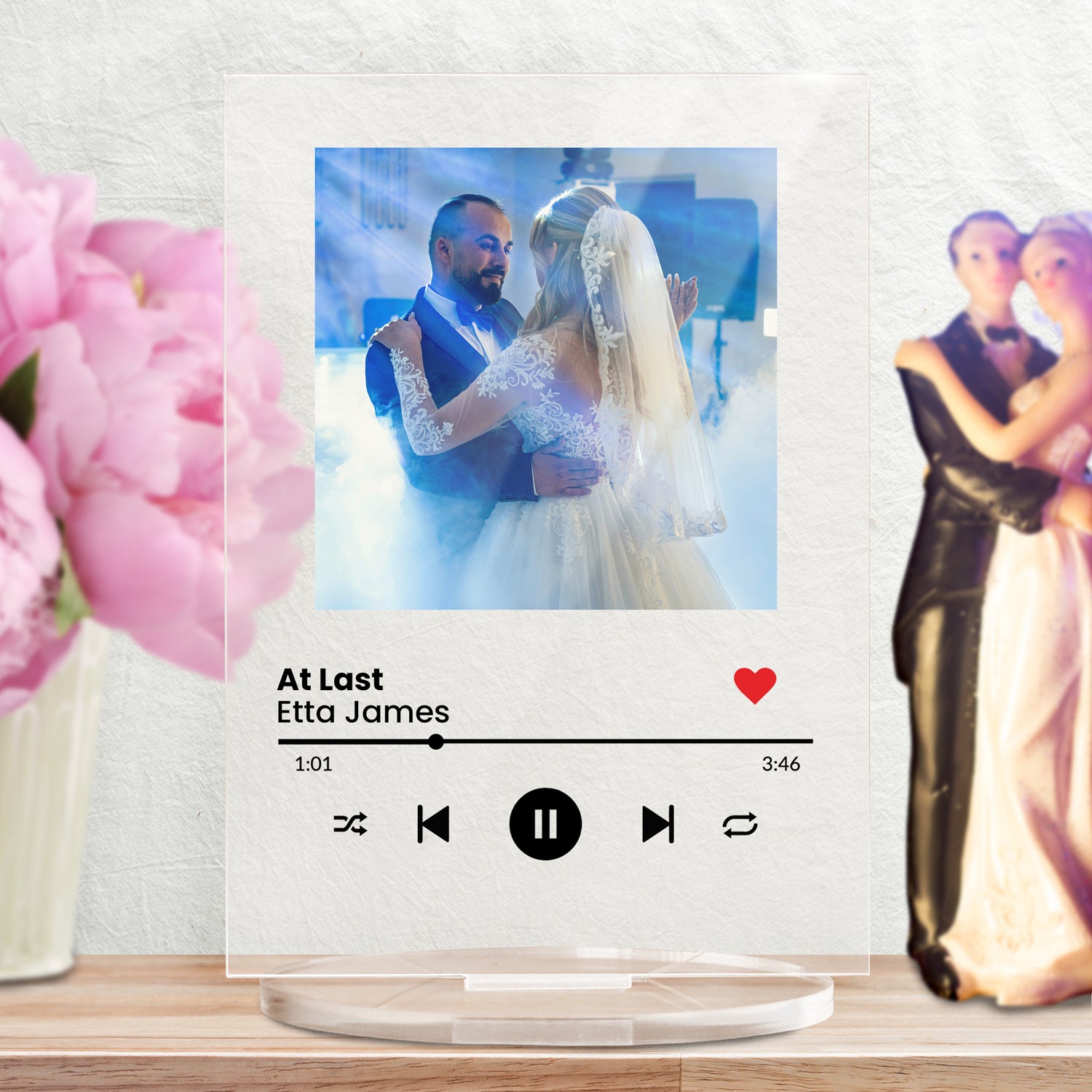 Add your own wording and upload a photo on this rectangular acrylic plaque to commemorate a special springtime song. Your design will printed onto a 140mm x 100mm rectangle which is 3mm thick and arrives with an acrylic stand.