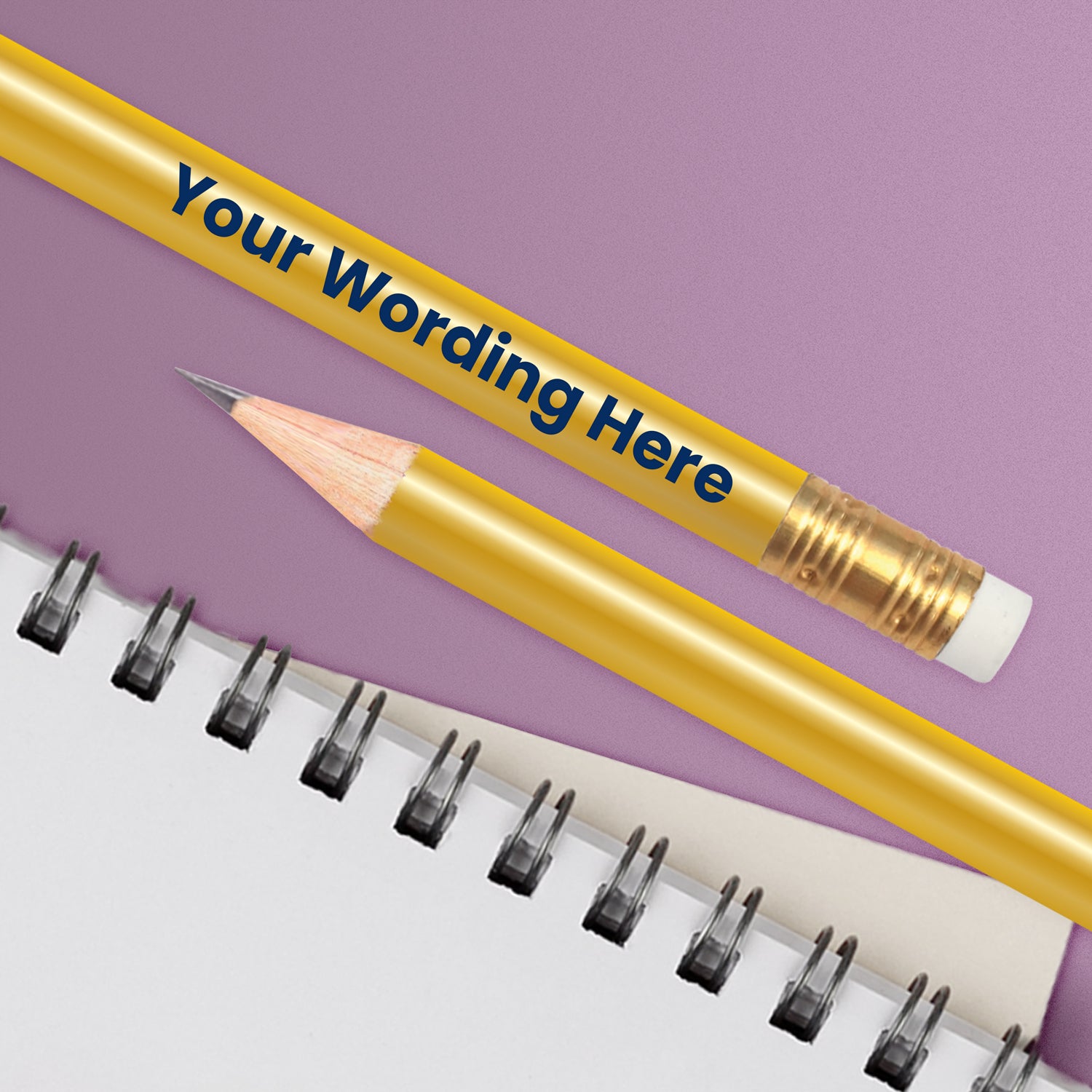 Add your own wording to this gold HB pencil to create unique gifts for loved ones or branded pencils to promote your business!