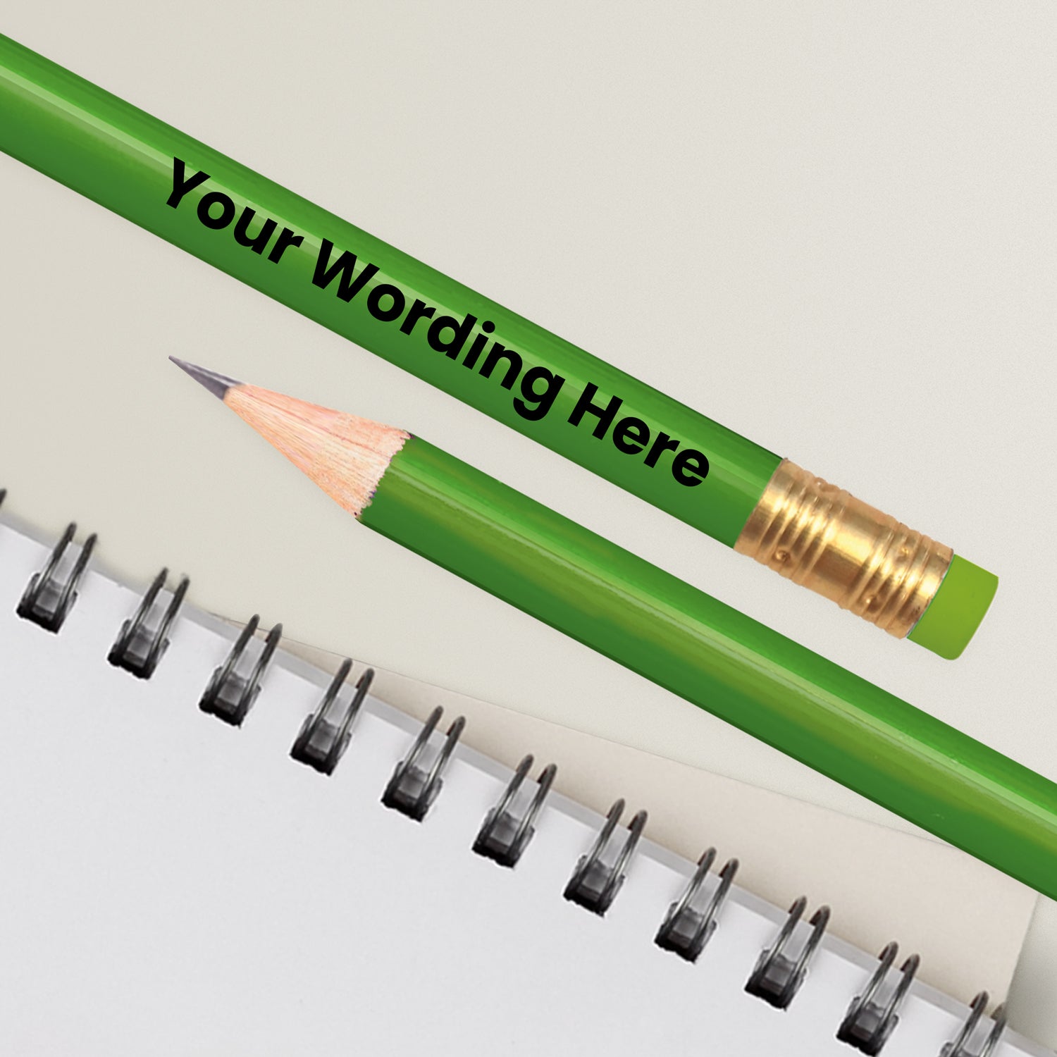 Add your own wording to this light green HB pencil to create unique gifts for loved ones or branded pencils to promote your business!