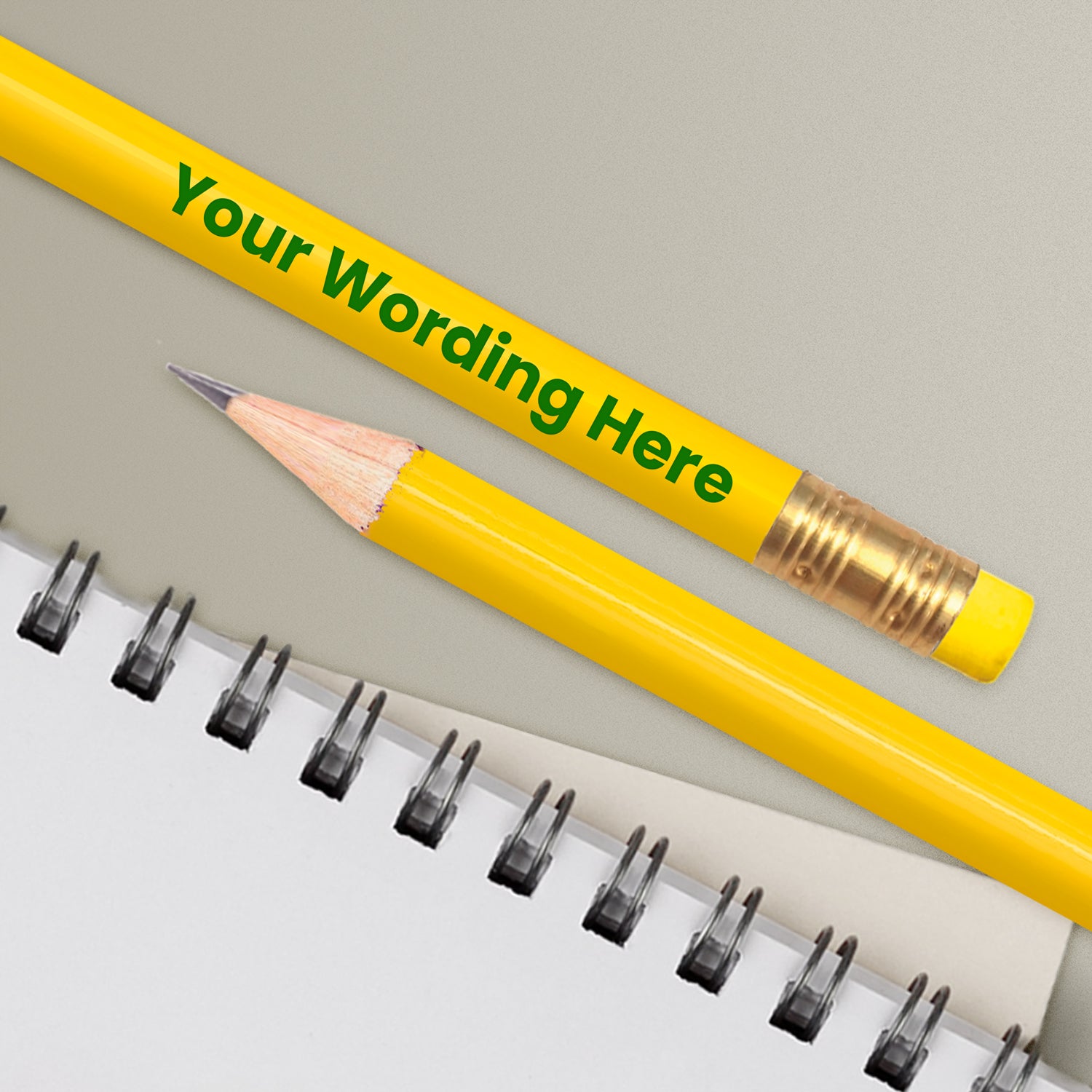 Add your own wording to this yellow HB pencil to create unique gifts for loved ones or branded pencils to promote your business!