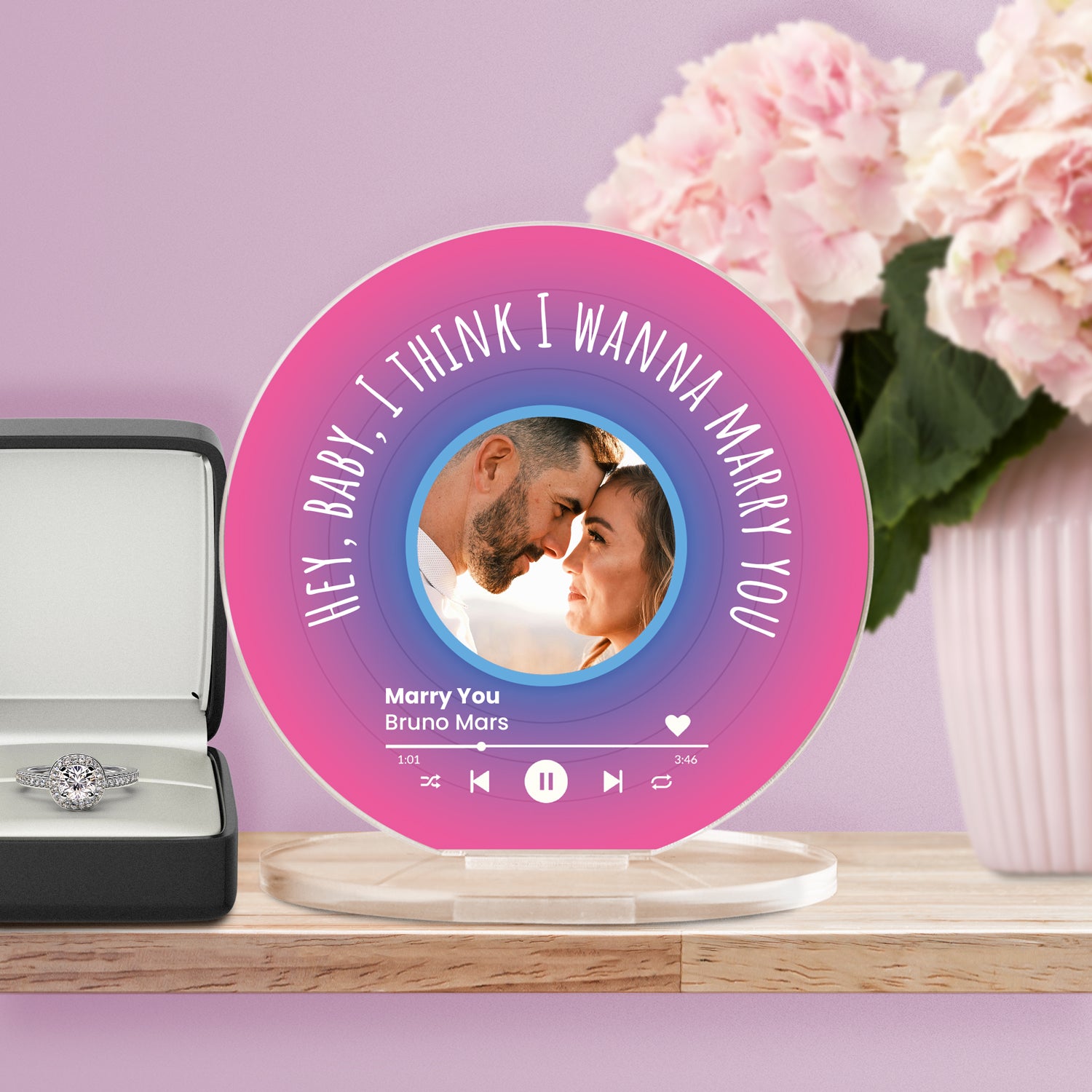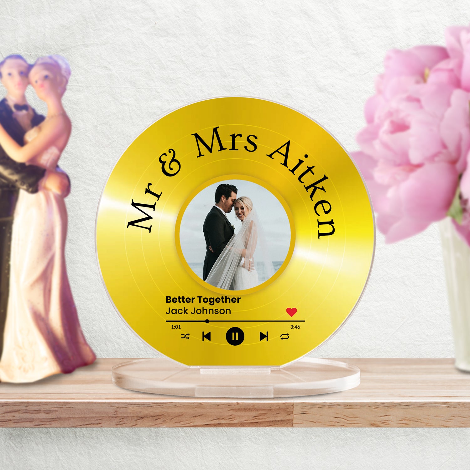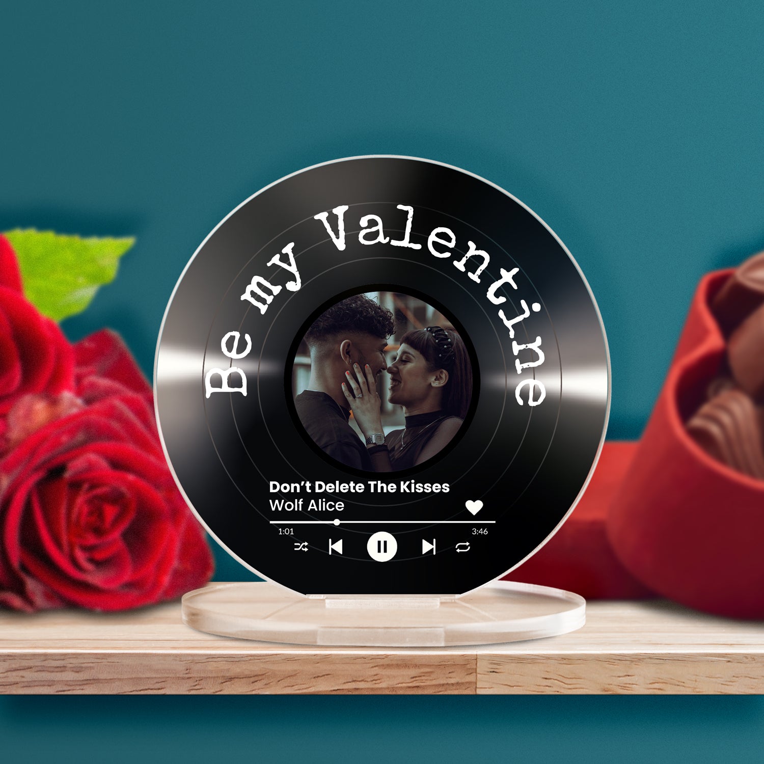 Add your own wording, upload a photo and choose a colour scheme on this circular acrylic plaque to commemorate the favourite song of your Valentine. Your design will printed onto a 100mm diameter circle which is 3mm thick and arrives with an acrylic stand.
