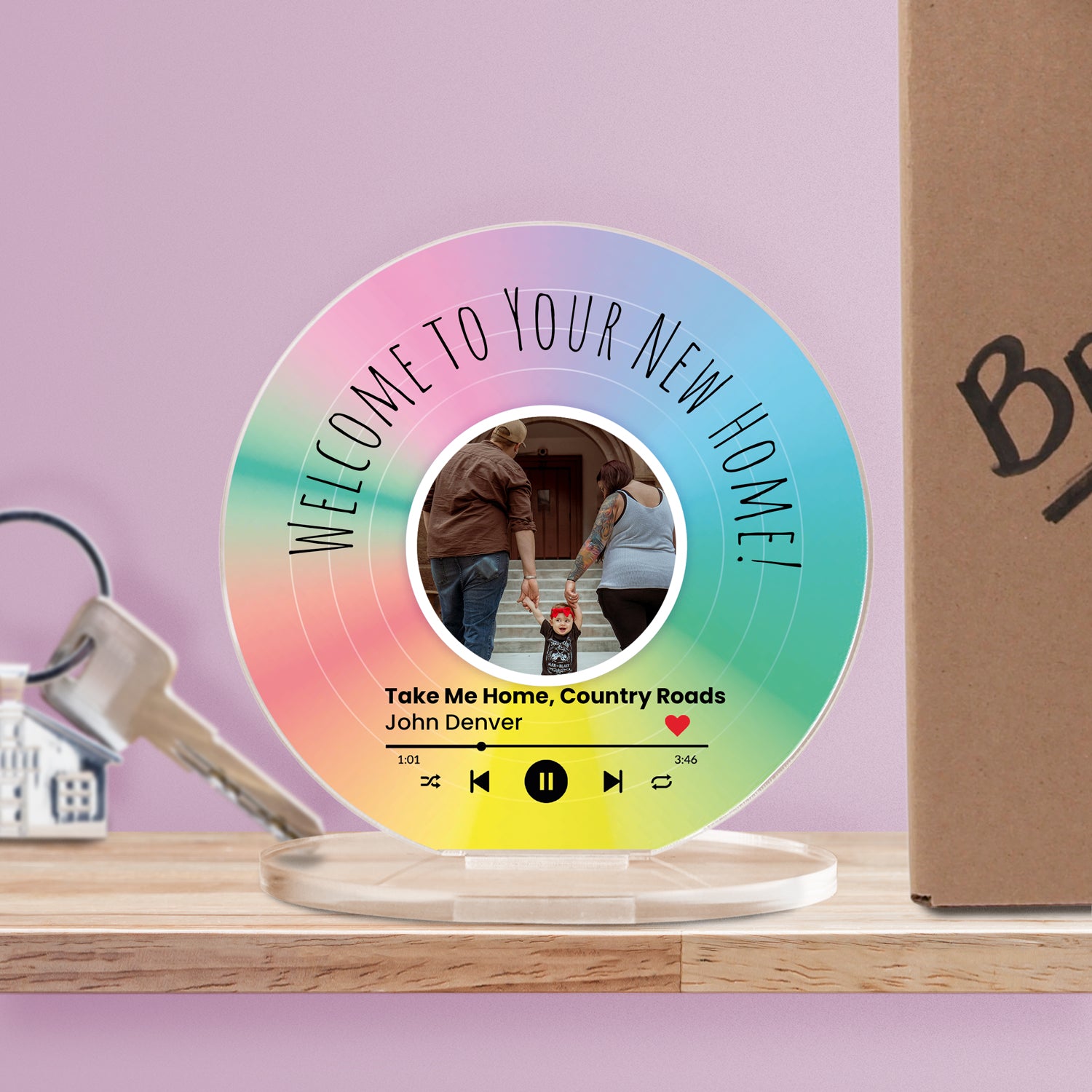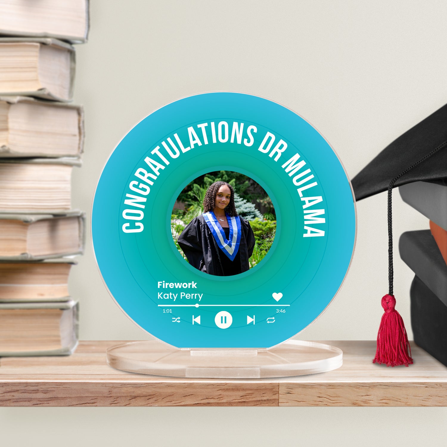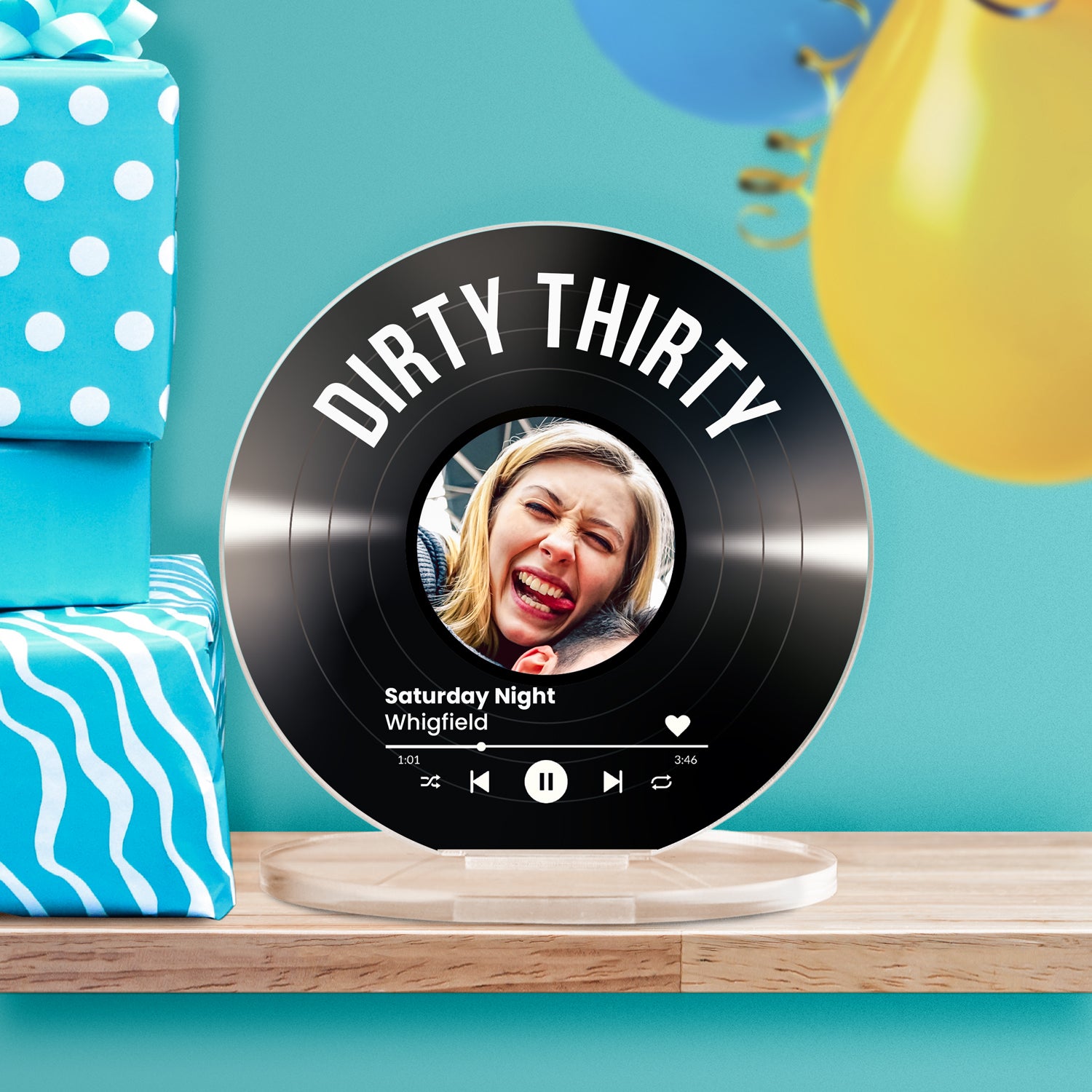 Add your own wording, upload a photo and choose a colour scheme on this circular acrylic plaque to commemorate the favourite song of your Valentine. Your design will printed onto a 100mm diameter circle which is 3mm thick and arrives with an acrylic stand.
