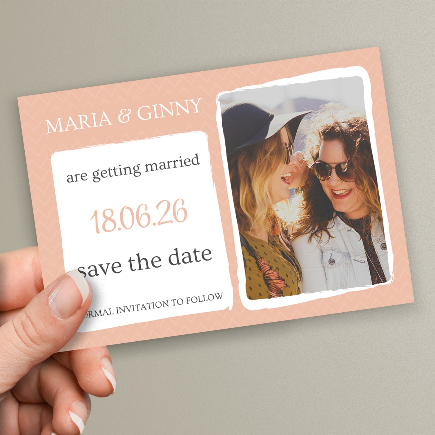 Create unique 'save the date' invitations for your wedding with these personalised A6 size postcards. Add your own wording, image and colour theme.