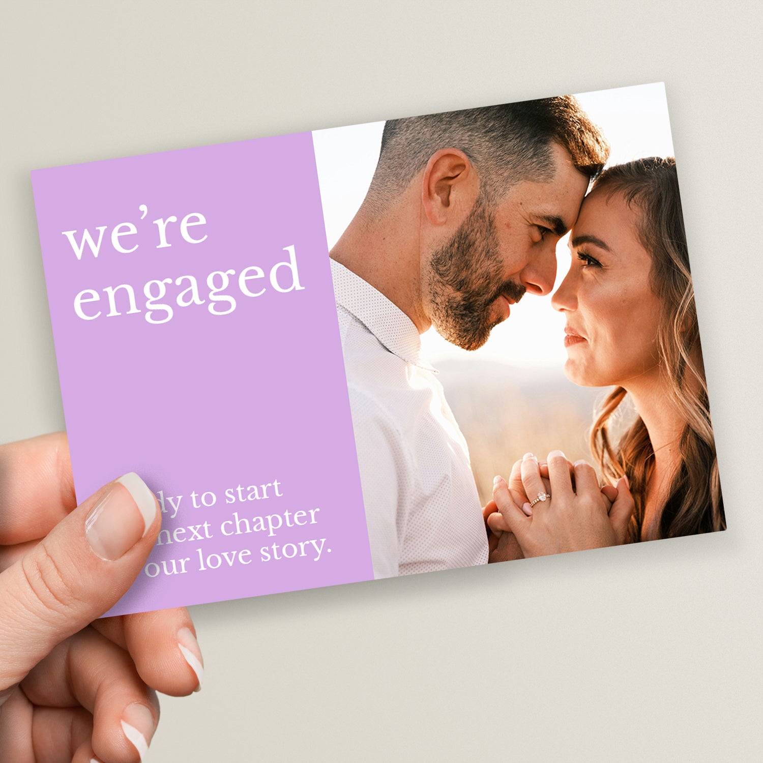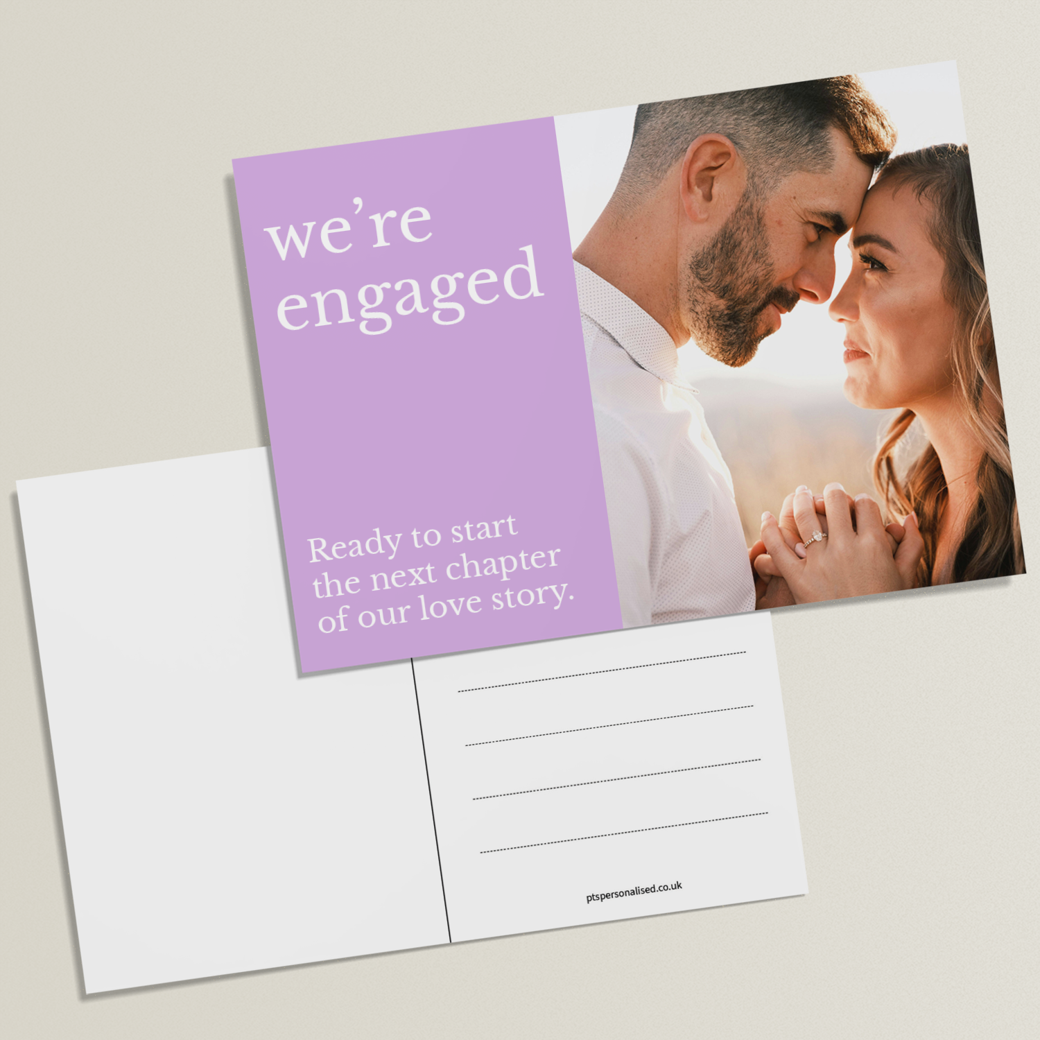 Upload your own photo on one side of this postcard and add your own wording on the other! Perfect for creating unique engagement announcements or inviting friends and family to your engagement party.