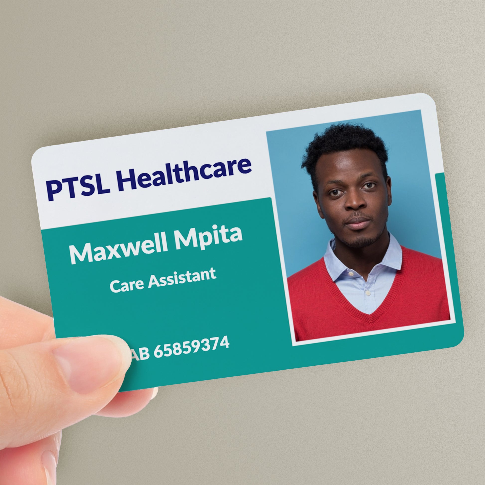 Choose from 13 colours and add your photo and wording (E.g. employee name, business name and job title) to these ID cards. Perfect for using as business ID cards or visitor passes.